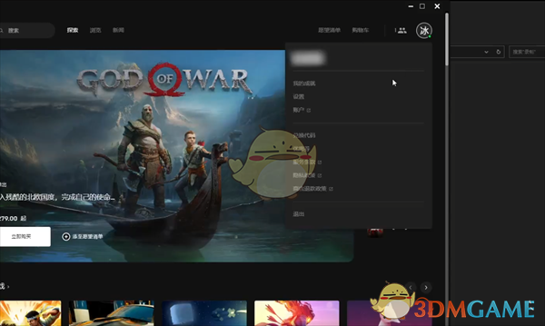 1、在epic客户端中点击右上方的账号名称,随后点击账号选项中的账户选项进入网页版账号中心。